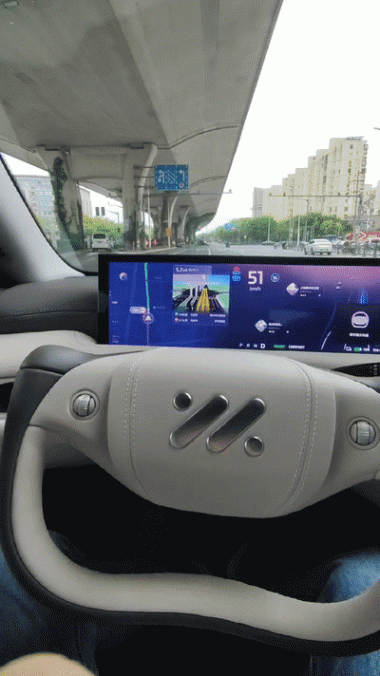 遺憾的是,此次我們沒有體驗(yàn)一把智己L6在高速公路上的智駕能力,比如上下匝道以及一些復(fù)雜的立交橋。不過,途經(jīng)的這段城市快速路還是短暫體驗(yàn)了一下,即在上下高架橋時(shí)車子會(huì)觀察車流并精準(zhǔn)進(jìn)入,而行駛到高架橋遇到加塞和大車靠近時(shí)也能主動(dòng)減速讓行,如老司機(jī)一般的判斷。