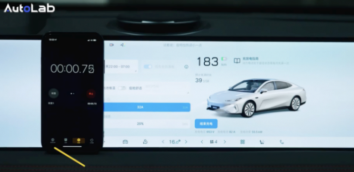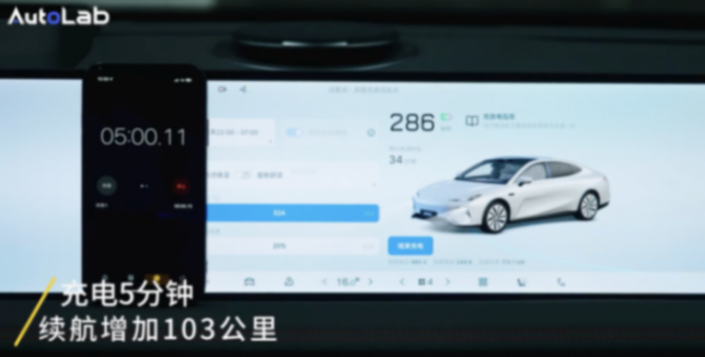 經過我們的測試,在受到充電溫度、荷電狀態、充電樁等多方面因素影響下,充電功率能達到245千瓦。僅僅5分鐘續航就增加了103公里。