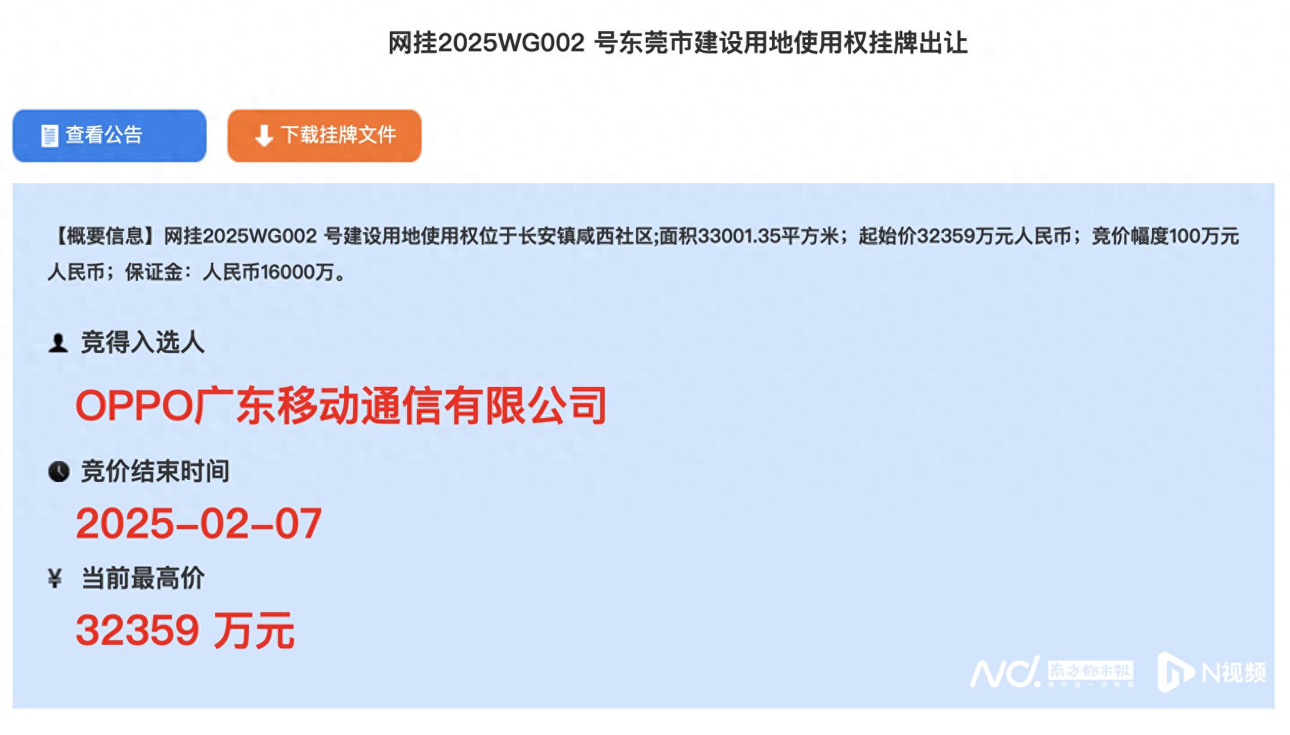 OPPO廣東移動通信有限公司以底價約3.24億元拿下長安鎮咸西社區一宗占地面積約33001平方米的商業用地。