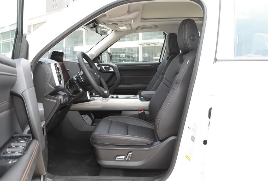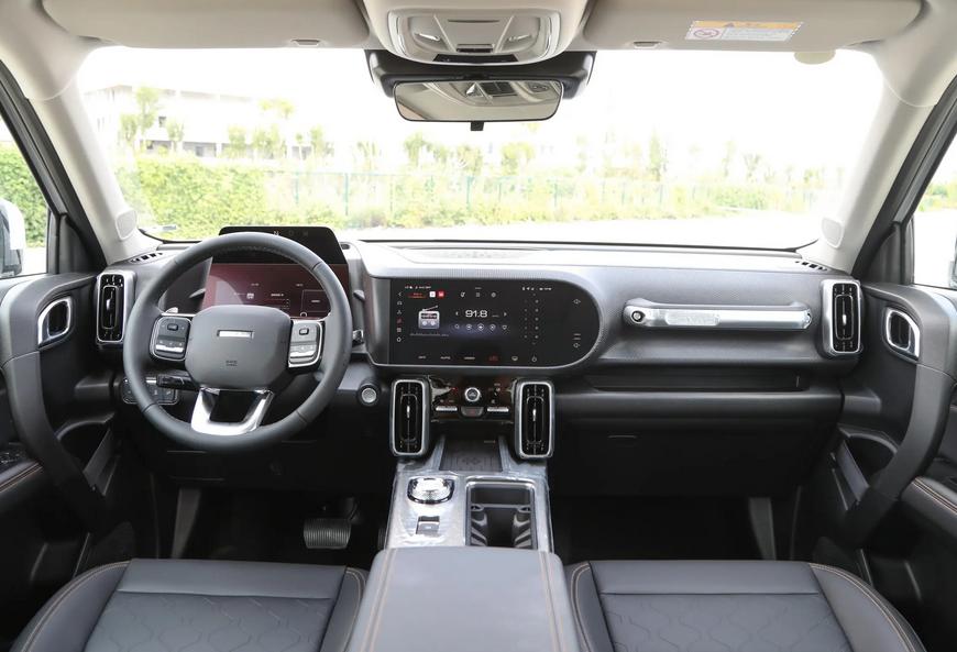 前臉復(fù)古圓形大燈搭配粗壯橫幅式進(jìn)氣格柵,視覺沖擊力十足,還透著一股復(fù)古韻味。車身側(cè)面的獨(dú)特標(biāo)識與實(shí)用的車頂行李架,不僅凸顯越野屬性,更為熱衷戶外出行的消費(fèi)者提供便利。車尾寬大厚實(shí),貫穿式尾燈從兩側(cè)向下延伸,有著較高的辨識度,底部隱藏式雙邊單出排氣布局,讓整車精致感倍增。然而,方正的車身導(dǎo)致風(fēng)阻系數(shù)偏高,高速行駛時(shí)油耗增加,風(fēng)噪較大,車速超一定速度時(shí),風(fēng)噪會干擾車內(nèi)交流。而且車身寬大,在停車位緊張或狹窄的停車場,停車難度加大,新手操作時(shí)需格外小心,以防刮蹭。