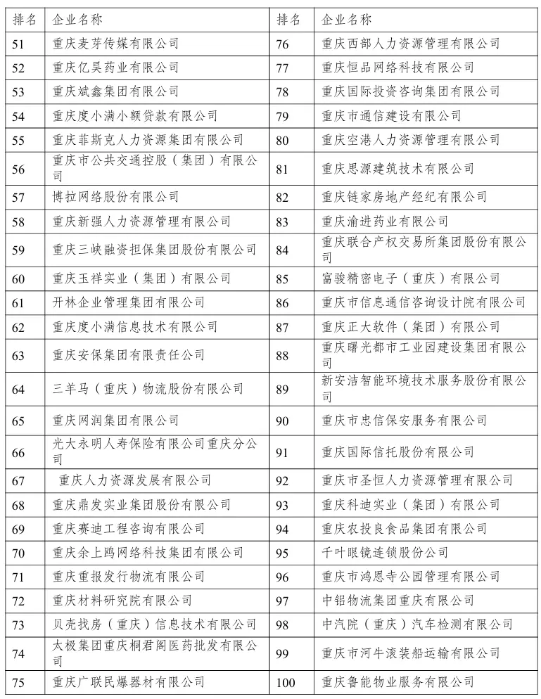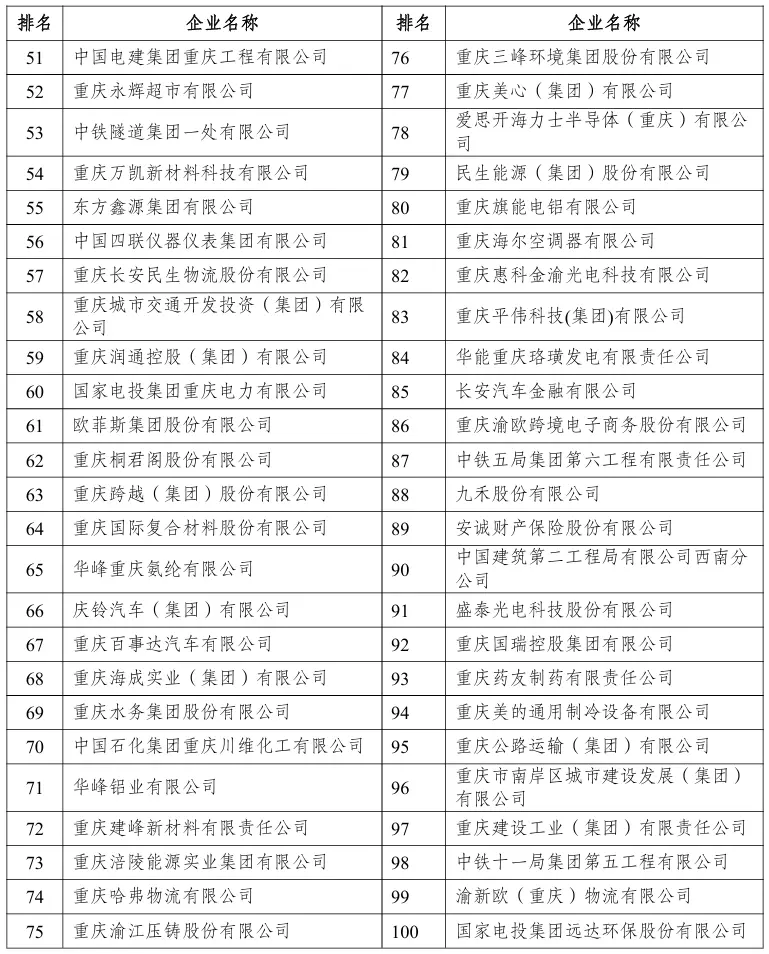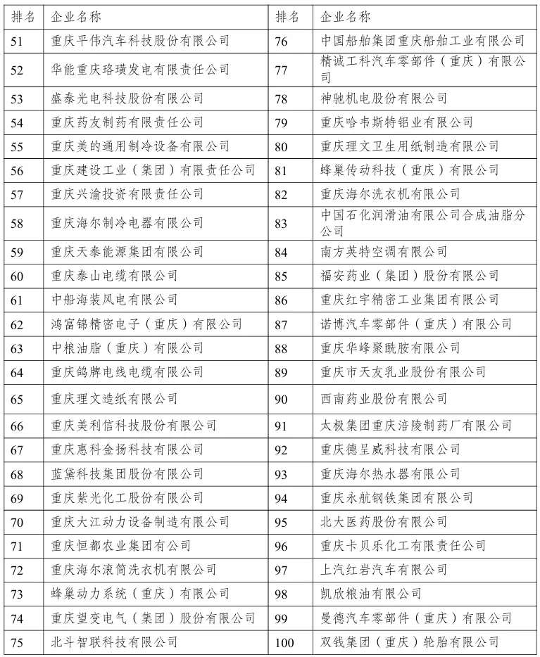與去年相比,賽力斯、重慶百貨、遠達環保、民生能源集團、重慶京東方、盛泰光電、哈弗物流、平偉集團、重慶長城汽車、渝歐公司是首次出現在名單中。