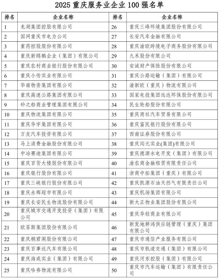 10 月 13 日消息,重慶市企業聯合會(企業家協會)于 10 月 10 日發布 2025 重慶企業 100 強分析報告及名單。會上同時發布 2025 重慶制造業企業 100 強、重慶服務業企業 100 強分析報告及名單。