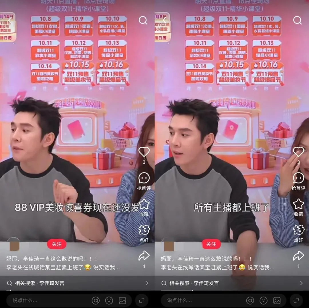 十一期間,李佳琦在直播間讀到用戶關于平臺優惠券未發放的抱怨,直接隔空喊話:“淘寶直播、天貓老板,上班了!所有主播都上班了!”隨即有用戶評論:“李佳琦不如自己開個平臺。”這句調侃,也是直接道出了頭部主播在當前電商生態中的變化。