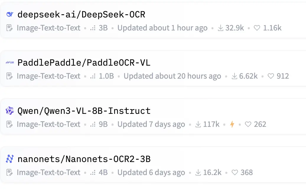 截至10月22日,抱抱臉上最受歡迎的前四個(gè)模型,全部都支持OCR。